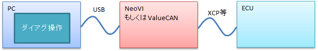 ダイアグとは、CANバス上に特定のプロトコルが定義されているもので、そのプロトコルに従うことでECU内部にアクセスする事ができます。