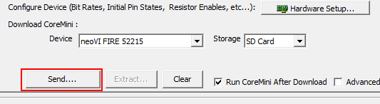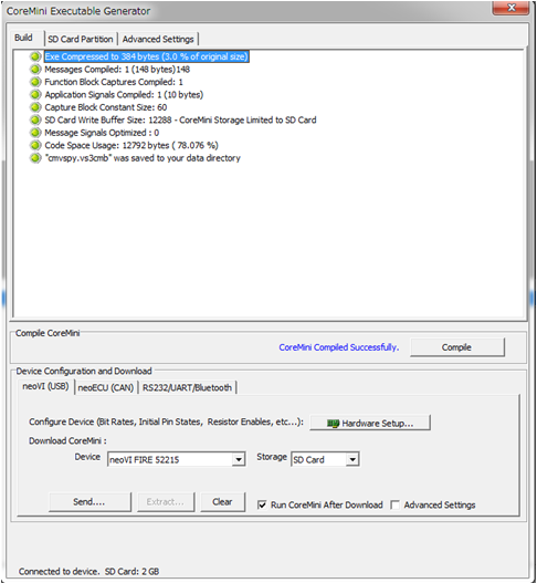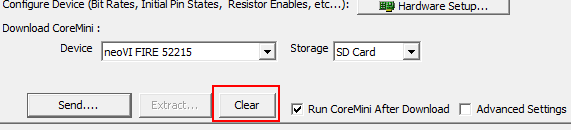 それどころか、PCに接続されていても勝手にロギング用ロジックが走ります。スタンドアロンによるロギングが終了し、NeoVIが勝手に走るのが望ましくない状態になったら、「Clear」ボタンを押して、NeoVI上のロジックを消去してやります。