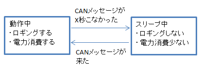 そこで、CANメッセージがある程度来なかったらスリープ、CANメッセージが来たらウェークアップ、という設定をしてやる必要があります。