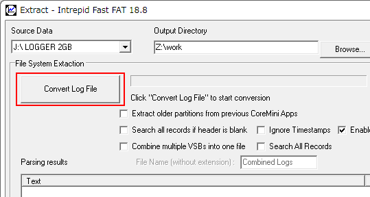 上記2点を設定したら「Convert Log File」ボタンをクリックします。