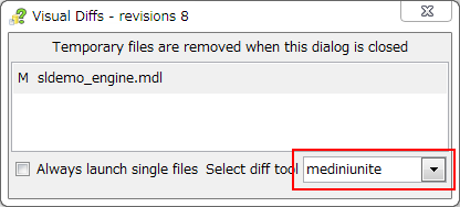 すると、medini uniteが起動してDiffを表示してくれます。