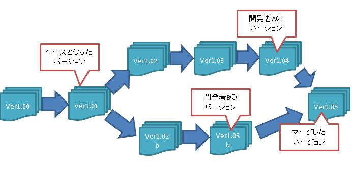 _ベースとなったバージョン、開発者Bのバージョン、開発者Aのバージョン_