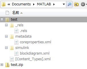 これは完全に妄想ですが、将来的には slx に複数ファイル(matファイルとか、mファイルとか)を埋め込めるようになるかも分かりません。まさにzipならではの応用です。